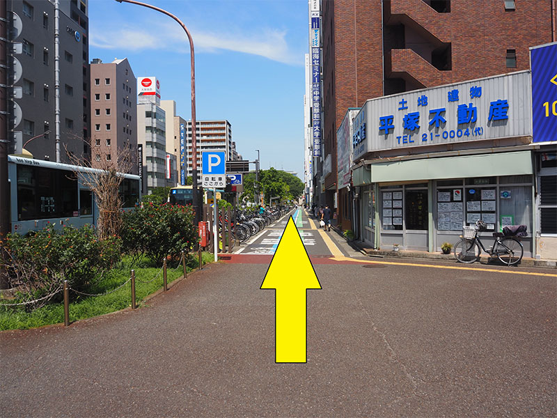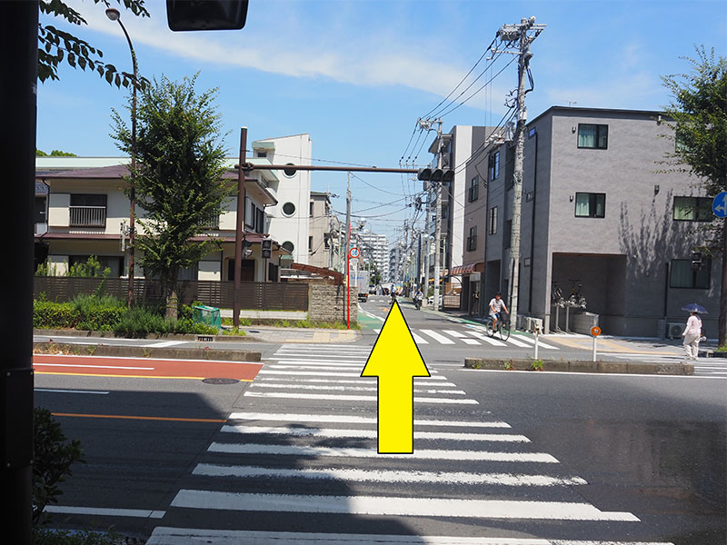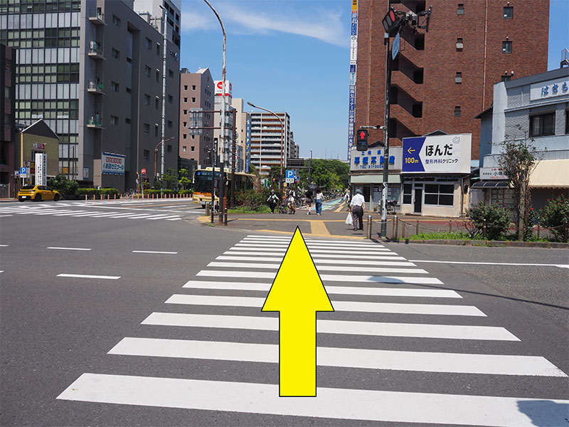 交差点を渡り、まっすぐお進みください。