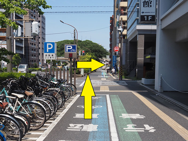 そのまま歩道橋前までまっすぐお進みください。