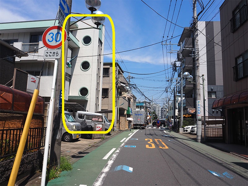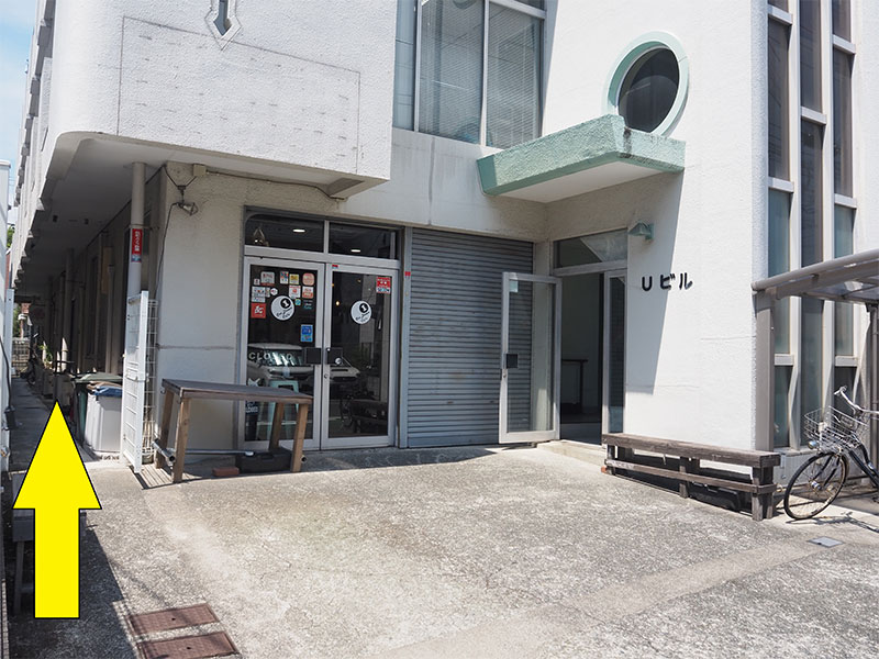建物脇をお進みください。
